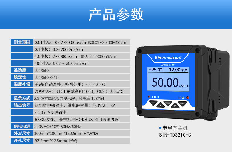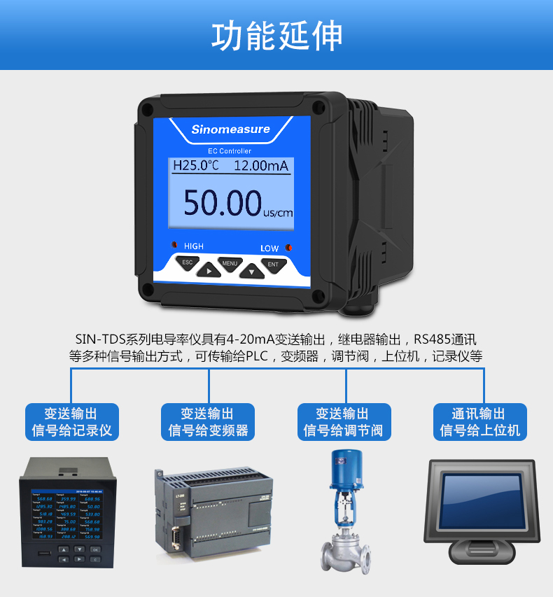 SIN-TDS210-C工業(yè)電導(dǎo)率儀表,廣泛應(yīng)用于火電、化工化肥、冶金、環(huán)保、制藥、生 化、食品和自來水等行業(yè)??刂破髦饕獙θ芤褐械碾妼?dǎo)率/總?cè)芙夤腆w/ 電阻率和溫度進(jìn)行連續(xù)監(jiān)測。