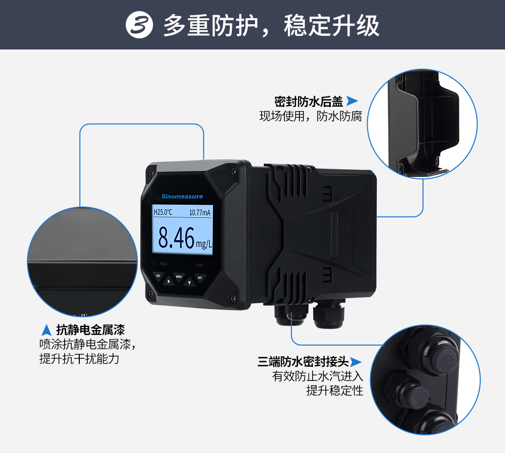 在線溶氧儀,SIN型在線溶氧儀是高智能化在線連續監測儀。可以配極譜式電極、熒光電極,自動實現ppm級的寬范圍測量,是檢測環保污水相關行業的液體中氧含量測量的專用儀器。其具有響應快、穩定、可靠、使用費用低等特點,適合污水處理廠大量使用。