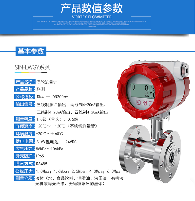 流體流經(jīng)傳感器殼體,由于葉輪的葉片與流向有一定的角度,流體的沖力使葉片具有轉(zhuǎn)動力矩,克服摩擦力矩和流體阻力之后葉片旋轉(zhuǎn),在力矩平衡后轉(zhuǎn)速穩(wěn)定,在一定的條件下,轉(zhuǎn)速與流速成正比,由于葉片有導(dǎo)磁性,它處于信號檢測器(由永久磁鋼和線圈組成)的磁場中,旋轉(zhuǎn)的葉片切割磁力線,周期性的改變著線圈的磁通量,從而使線圈兩端感應(yīng)出電脈沖信號,此信號經(jīng)過放大器的放大整形,形成有一定幅度的連續(xù)的矩形脈沖波,可遠(yuǎn)傳至顯示儀表,顯示出流體的瞬時流量或總量。
