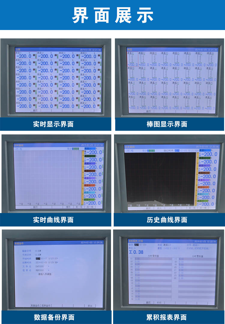 無紙記錄儀是將采集的數(shù)據(jù)/運(yùn)算數(shù)據(jù)以時(shí)間為基軸記錄在儀器內(nèi)部的存儲(chǔ)系統(tǒng)中,無消耗任何常用的記錄設(shè)施,如:紙張、筆墨。記錄在儀器內(nèi)部的存儲(chǔ)數(shù)據(jù),通過運(yùn)算、模擬后顯示在液晶屏。常用顯示用液晶屏比較廣泛。在液晶屏屏幕上,可以顯示數(shù)字顯示、棒圖顯示、曲線顯示、報(bào)警列表等。無紙記錄儀采集的數(shù)據(jù),常用的有:溫度、壓力、流量、液位、電壓、電流、濕度、頻率、振動(dòng)、轉(zhuǎn)速等。