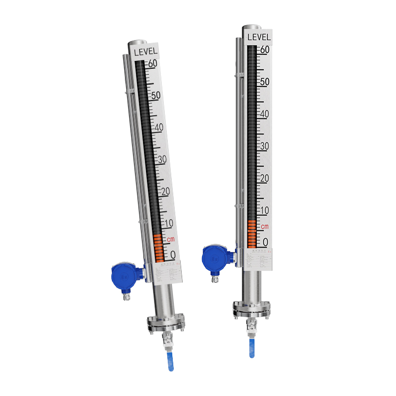 液位變送器由傳感器和電流轉(zhuǎn)換器兩部分組成,其傳感器部分安裝 在液位計指示器內(nèi)(內(nèi)置式)或不銹鋼保護管內(nèi)(捆綁式),使其與磁 性液位計處于同一磁耦系統(tǒng)中,當液位上下波動變化時,其磁性浮子傳 感器內(nèi)的干簧電阻矩陣中的干簧管,不斷地吸合或釋放,從而導致傳感 器矩陣的輸出電阻值發(fā)生變化,其變化的阻值與液位的變化值成對應的 線性關(guān)系,也就是液位的變化轉(zhuǎn)換成電阻的變化,并通過電流轉(zhuǎn)換模塊 將電阻變化轉(zhuǎn)換成 4~20mA 電流變化。