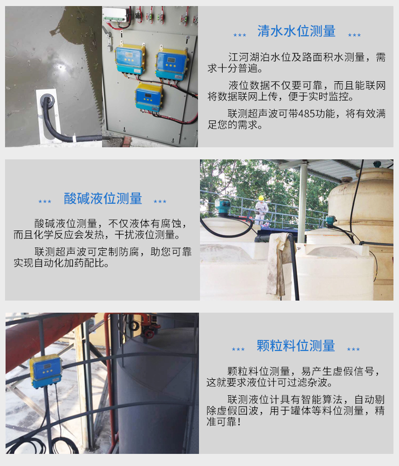 在測量中超聲波脈沖由傳感器(換能器)發(fā)出,聲波經(jīng)液體表面反射后被同一傳感器接收或超聲波接收器,通過壓電晶體或磁致伸縮器件轉(zhuǎn)換成電信號,并由聲波的發(fā)射和接收之間的時(shí)間來計(jì)算傳感器到被測液體表面的距離。 由于采用非接觸的測量,被測介質(zhì)幾乎不受限制,可廣泛用于各種液體和固體物料高度的測量。