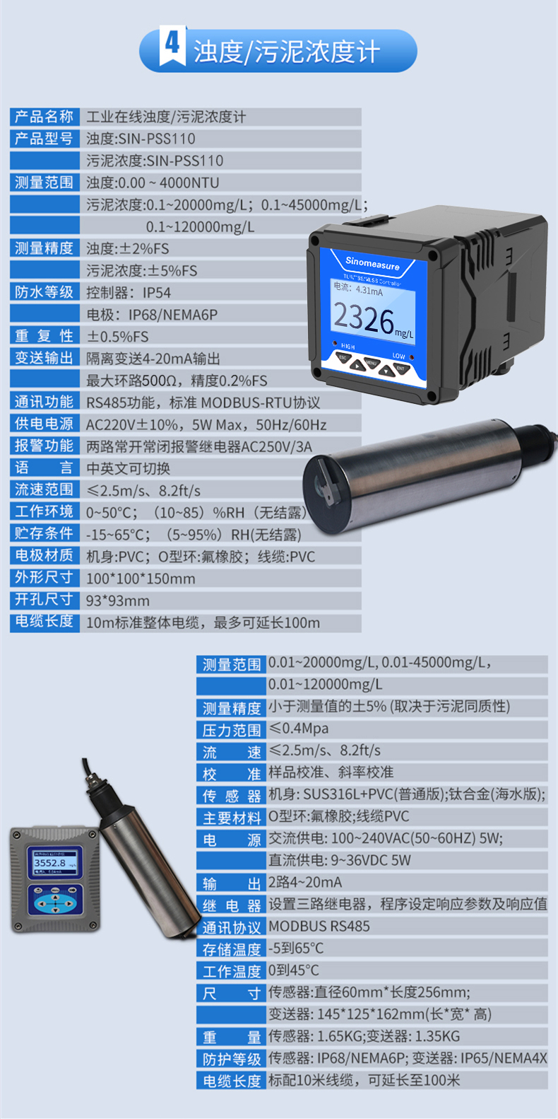濁度/污泥濃度傳感器的原理基于組合紅外吸收散射光線法,應(yīng)用ISO7027方法可以連續(xù)并精確地測定濁度或污泥濃度。